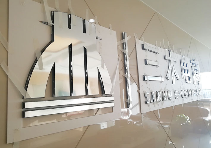 背景墙采用亚克力立体字工艺制作,或者我们一般也可以称为:亚克力水晶字